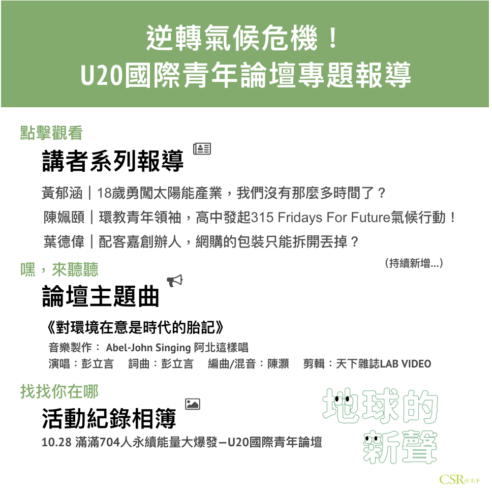 面對氣候緊急時代,我們需要愈來愈多的年輕力量站出來,為自己與地球發聲,並從全球及地方展開行動。我們也相信,這世界將因為更多青年參與的力量而帶來豐沛正向的改變!