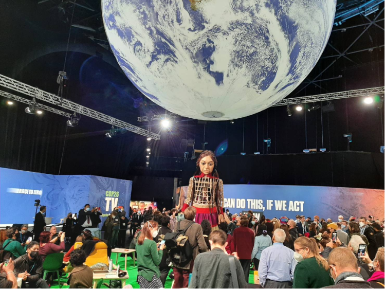能源健檢師不少見,但為何用女性能源健檢師作為切角?故事要從2021年聯合國氣候大會COP26說起。會場上,3.5公尺高的小女孩「Little Amal」成為陳惠萍眼裡最可見的「氣候難民」,她是敘利亞難民的小女孩化身。