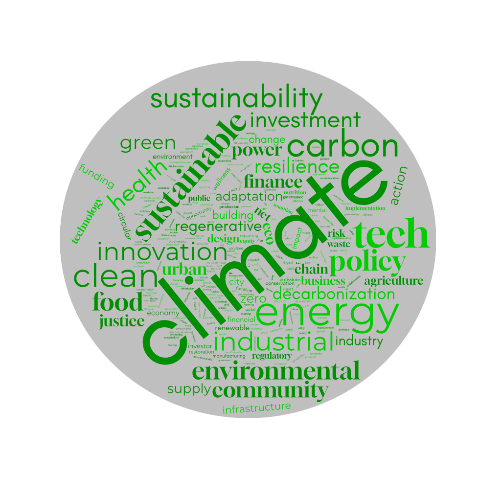 - Industry:主要圍繞在重工業與能源脫碳、循環經濟與材料創新、AI 與數位科技應用,以及跨產業合作。凸顯出工業在淨零轉型中不只是減碳排放者,也是推動新技術、創新商業模式與全球合作的重要驅動力。