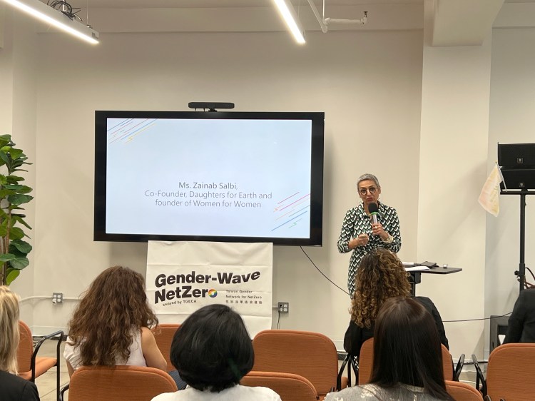 接著,人道主義者與作家 Zainab Salbi 揭示了資金分配的嚴重失衡——在全球氣候資金中,由女性領導的項目僅獲得 0.2% 的份額。她強烈呼籲國際社會必須擺脫將女性視為單一受害者的傳統敘事,轉而大規模地支持並資助由女性主導的自然保護行動,將她們視為改變的關鍵行為者。