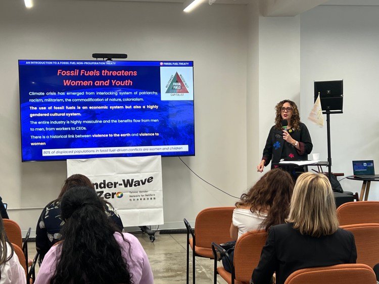 在這場「從女孩到阿嬤:性別回應的氣候解方,邁向跨世代的公正轉型」(From Girls to Grannies: Gender-Responsive Climate Solutions for a Just Transition Across Generations)的講座中,協會邀請了三位專家,為性別化氣候行動提供多元觀點。首先,環保運動家 Tzeporah Berman 博士指出化石燃料體系與性別不平等的結構性連結,她引用數據證明全球氣候難民中有八成為女性,並駁斥了「務實緩慢轉型」的論點,表示該體系是建立在父權意識形態之上,並透過高額補貼維持其不平等結構。