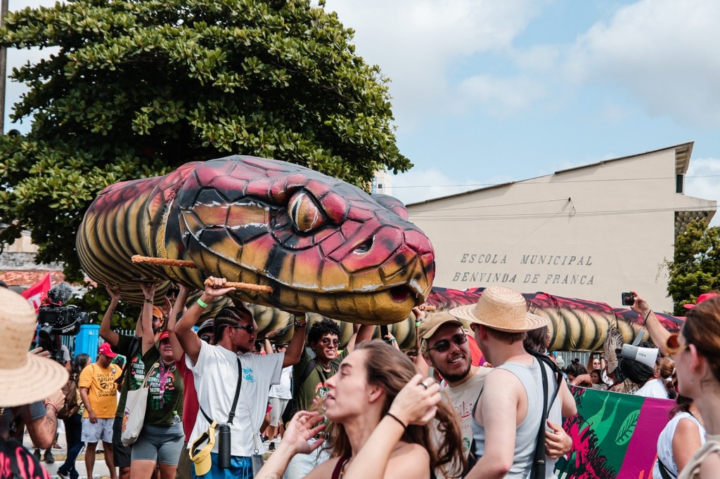 本場焦點還包含由巴西草根組織聯盟,在遊行中帶 30 公尺長的「巨型眼鏡蛇」雕塑,不僅象徵亞馬遜原住民文化,也藉 “Cobra”之寓意(葡文有「收錢、付錢」之意)呼籲富國必須要付出真正的氣候融資。 這條巨蛇是由 16 位藝術家在帕拉州 Santarém 製作,再由人民聯盟青年用船運到貝倫,遊行時需要 83 個人一起扛著走,相當吸睛也具有儀式感。