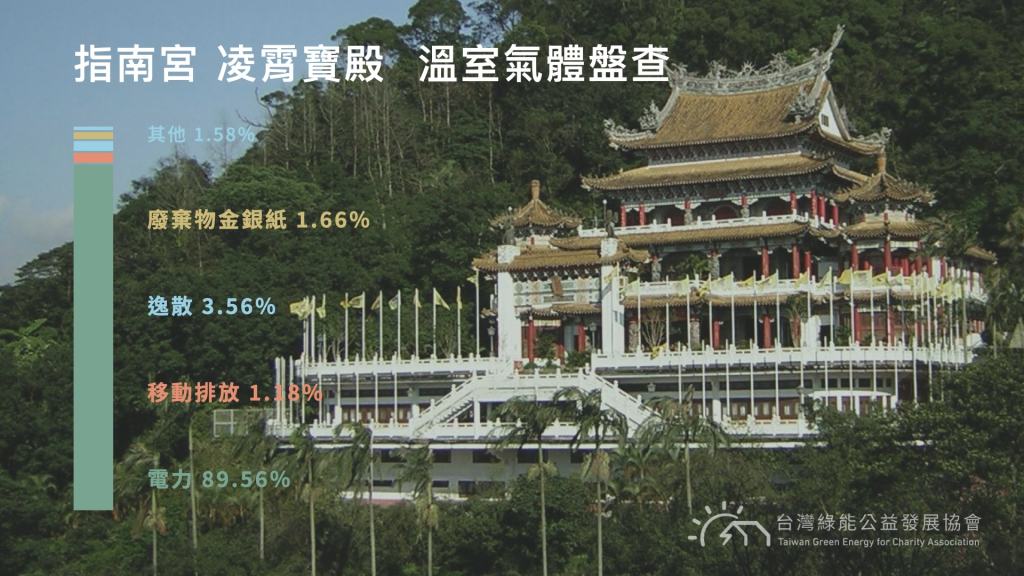 透過溫室氣體盤查結果可見,宮廟走向永續的行動路徑在減少燒金燒香後,下一步將回到能源耗用的議題上,除了台灣信仰習俗中常見的光明燈、太歲燈用電外,廟宇人員住宿或香客大樓等空間,冷氣老舊也是值得關注、優先處理的熱點。