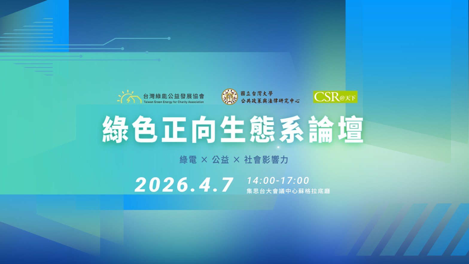 有鑒於此,社團法人台灣綠能公益發展協會與國立臺灣大學公共政策與法律研究中心將共同舉辦「綠色正向生態系論壇」,並發布《2025臺灣綠電生態系報告:離岸風電篇》,邀集政府、企業與學界代表,共同探討離岸風電與綠電市場發展,以及臺灣建構正向綠電生態系的未來方向。